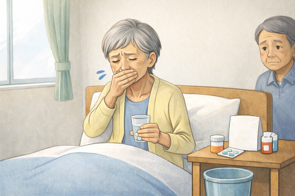 ・嘔吐あり(内服保持が困難)